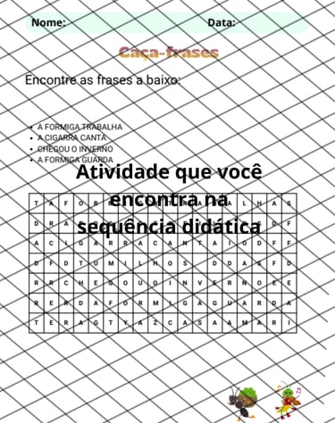 Sequência didática completa sobre a fabula Cigarra e a Formiga feita para imprimir, aplicar imediatamente e conquistar a atenção da turma!